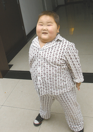 6岁的博博150斤重,眼睛眯成了一条缝,走路都走不动了,真的像电视剧里大头娃娃一样。可是他却没有大头娃娃的快乐,胖成这样是因为一年来他因病吃激素所致,而这一切都源于他在5岁时不幸患上了肾病综合症。