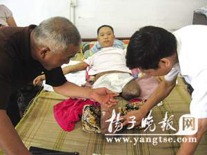左边臀部以下、右边膝盖以下已被截肢,全身都是烧伤的疤痕,但躺在床上的葛小勇并没有像记者想象中的那样颓废,就在前往他家回访的赵主任为他换药让他感觉疼痛时,他报以家人的却是玩笑似的语言:“赵主任别把我当是你,我怕疼”。简简单单的一句话让屋内所有人都相视而笑。