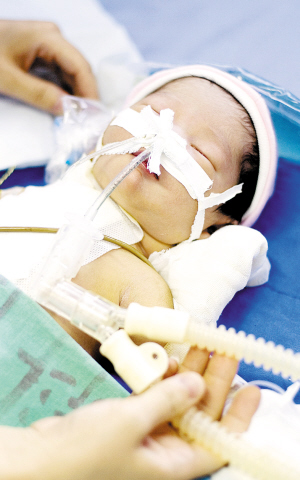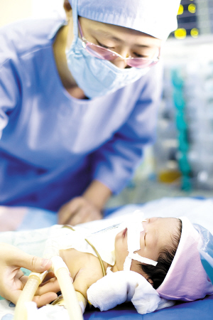 中秋节前添了个小宝贝,全家人都很高兴。然而秋秋出生后没多久,中心妇产科新生儿科的医生们就发现孩子的嘴唇以及全身上下都开始发紫,而且越来越厉害。于是,中心妇产科医院立即借助和胸科医院的合作关系,请来胸科医院的医生为秋秋作B超检查,发现秋秋属于紫绀型先天性心脏病,原本应该连接左心室的主动脉移位,必须尽快进行“修心”手术,否则左心室便会萎缩、丧失正常功能,会有生命危险。这突如其来的打击让秋秋的父母痛不欲生,但小两口仍然坚信自己的孩子一定能挺过这道难关,他们无论如何也要给孩子看好病。