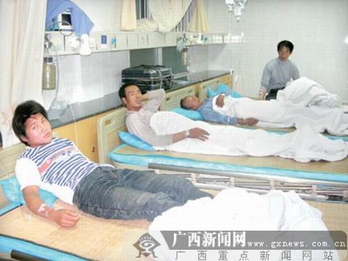 小杨告诉记者,出现中毒症状后,林场负责人就立即通知了120急救中心。晚上7时30分左右,有中毒症状的工友就陆续被送到南宁市第二人民医院了。“我是晚上8时许来到医院的”。