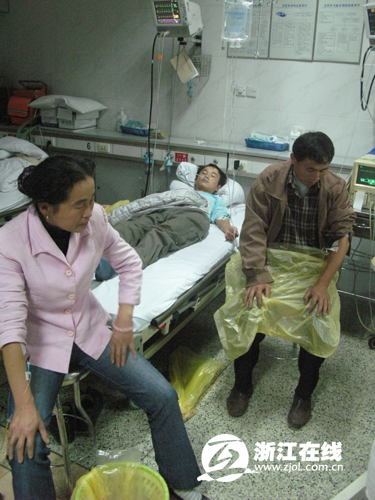 吴国华是几个人中的老大哥,他的情况稍微好点,只是感觉到恶心,四肢无力。他说,他们都是江西抚州东乡县人,前几天一行8人跟着老家的余某出来,准备到杭州丰潭萍水路口的橡树园工地做工程安装,今天早上7点多刚下火车。