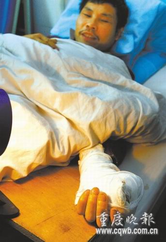 一家人欢欢喜喜杀肥猪过年,不料,被捅了一刀的大肥猪突然牢牢将杀猪人的手指咬在嘴里。前天(12月24日)下午,躺在病床上的渝北区农民张天贵哭笑不得,虽然手指已接回,但5000多元的医疗费已远远超过宰杀年猪的价值。