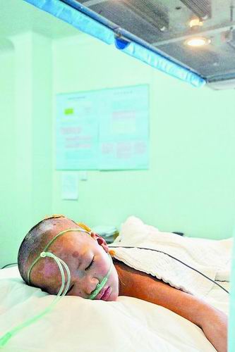 昨天(12月30日),在重症监护室内,东东神志很清醒,脸部没有任何烧伤痕迹,但他的头后部、腰部、屁股、腿脚却严重烧伤腐烂,所以,现在的他只能趴在病床上,每当医生问他名字和家在哪里时,他都只是以哭来回答。