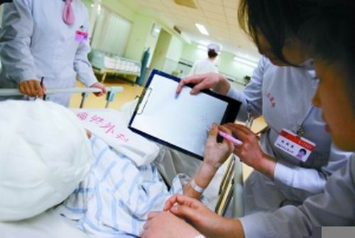 春节期间,值班护士有空就为其朗读文章,诱导赵某开口说话,并在病历卡上写上0至9个数字,让他把家里的电话号码给圈出来。