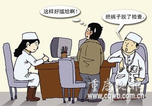 不过,重庆大学社会学专家罗章教授却不这么认为,她说,从人性化关怀来说,医生应该多体谅患者感受,或者医院该改善自己的医疗条件,比如增设“隔断”,来避免这种尴尬。 (王德利)