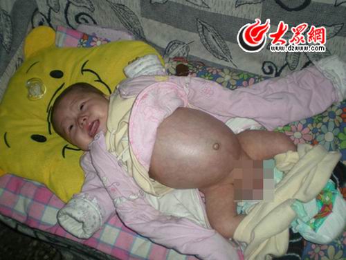 李鑫告诉记者,他家共有六口人,除了他与妻子,上有55岁高龄的父母,下有20岁妹妹在潍坊职业技术学院上学,一家老小靠摆地摊卖早点为生,虽然艰苦,倒也幸福。天有不测风云,2008年7月底,刚出生28天的儿子被查出先天性肾病综合征,对整个家来说,简直天塌了下来,他们四处求医,但治疗效果一直不很明显,儿子的病情一天天恶化,一家人却束手无策。