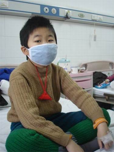 昨日下午3时,记者进入轩轩的病房,见有人来,轩轩勉强地从病床上支撑着坐了起来,一副口罩挂在孩子稚嫩的脸上,将整个面部遮挡了大半部分,只是一双虽受病痛折磨依然眼光坚毅的眼睛露在了外面。万玲告诉记者,这是因为怕细菌感染引起更糟糕的结果,所以遵医嘱戴起来的,每天只可以摘下一小会。小宇轩看到记者并没有显出害怕,但是虚弱的表情已经写在了脸上,孩子的身上开始出现很多的血印。一双原来白嫩的小手已清晰可见蜡黄色了,手背上则是刚扎完针包着的纱布。