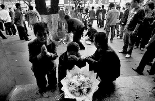 围观的群众目击老人悲伤,均叹息照片中年轻人过早失去宝贵的生命。记者还发现,随家属到场送别思伟的还有不少年轻男女。有穿黑色便装的,也有穿学校服装的。一名学生流着泪说,思伟是在市第四十九中毕业的,怎么也无法相信师兄已经离开他们而去。