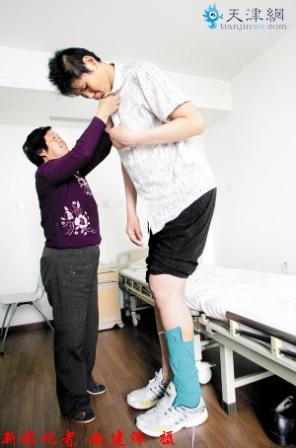 比姚明还高出20厘米的“小巨人”,昨天(4月13日)来到天津治疗纠缠了他9年的脚伤。虽然手术难度不大,可给他那只37厘米长的“大脚丫子”动刀,光是手术工具就让医生和麻醉师头疼了一番。