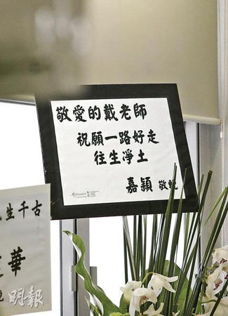 郑嘉颖送上花牌祝愿敬爱的戴老师一路好走