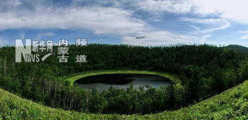 内蒙古大兴安岭柴河地区的火山口形成的天池,当地人称为“月亮天池”(7月3日摄)。