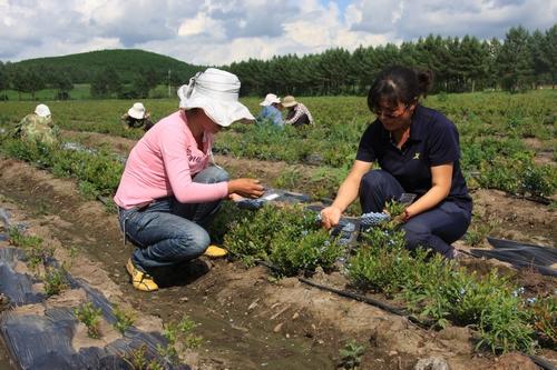 盛夏7月,内蒙古大兴安岭林区大杨树林业局人工培植的500多亩蓝莓喜获丰收。