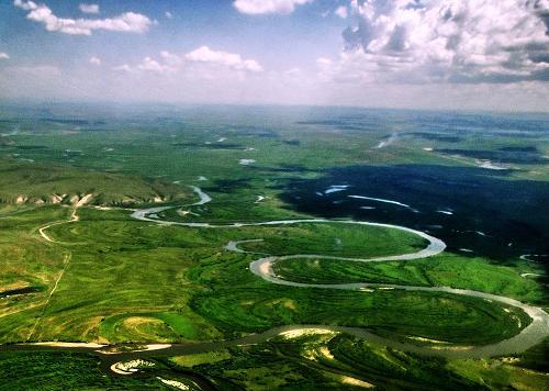 6月17日拍摄的内蒙古大兴安岭丘陵山区流淌的河流。“天保工程”实施10年来,我国北方最重要的生态屏障——内蒙古大兴安岭林区天然林资源保护工程及生态建设成就显著,累计人工更新造林1817.8万亩,活立木蓄积量新增1.2亿立方米,森林覆盖率已从10年前的69.09%提高到今年的75.68%。新华社记者李欣摄