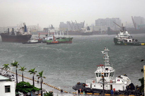 受台风“莱罗克”来袭影响,高雄港务局1日上午管制船舶进出港。图为高雄港边一景。 图片来源:“中央社”