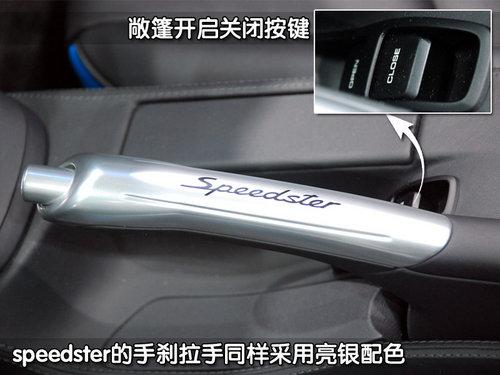 speedster的手刹拉手同样采用亮银配色,旁边是开关车顶顶篷的控制按键,一开一关方便好用。使用机械式手刹可以为驾驶者带来更多的驾驶乐趣,在做一些特别的动作时,机械手刹还是很重要的一项配置。