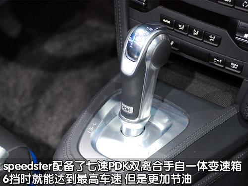保时捷speedster配备了七速PDK双离合手自一体变速箱,亮银挡板看起来十分上档次,手感也十分细腻。七速PDK双离合手自一体变速箱6挡时就能达到最高车速,而7挡由于传动比更大,因此耗油量更少。