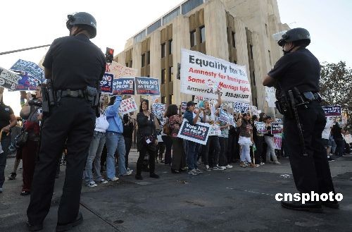 图:洛杉矶市民为禁止同性恋婚姻而对立(2)