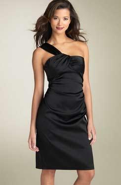 单肩——不对称的美丽!配上胸部轻描淡写般的皱褶,无需更多修饰就很完美的一条小黑裙,但不适合肩膀宽的女人。