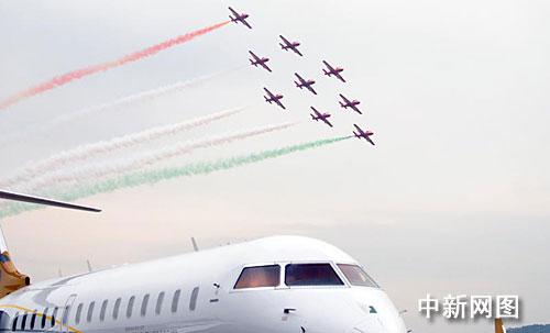 印度空军“阳光”表演队在珠海航展上进行飞行表演。孙自法 摄