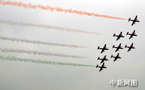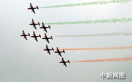 印度空军“阳光”表演队在珠海航展上进行飞行表演。孙自法 摄