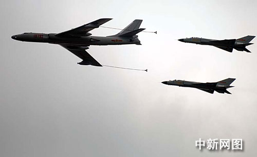 中国空军在第七届珠海航展上进行空中加油飞行表演。孙自法 摄