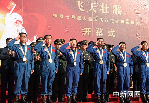 11月9日,以“再现‘神七’飞天全过程 记录漫步太空经典时刻”为主题的《飞天壮歌——神舟七号载人航天飞行纪实摄影展览》,九日在北京中国人民革命军事博物馆开幕。