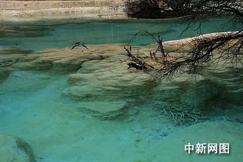 整个山谷几乎全被乳黄色的碳酸钙质覆盖,从高处看去,宛若一条从岷山雪峰飞腾而下的黄龙,景区由此得名。一层层的碳酸钙形成层层叠叠的梯状湖泊、池沼,水色因水底沉积物和山色的千变万化,而呈黄、绿、浅蓝、蔚蓝等颜色,是名副其实的“人间瑶池”。