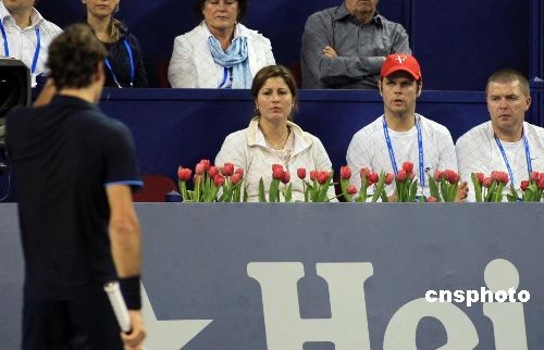费德勒的女友米尔卡(前排右三)到上海网球大师杯现场为这位瑞典“天王”加油助阵。