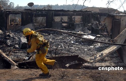 十一月十四日,在距离洛杉矶一百六十公里的加州圣塔芭芭拉县已经有百余间房屋被大火吞噬,数千人被迫紧急撤离,至少七人受伤,过火面积达两千五百英亩。尽管许多好莱坞明星在圣塔芭芭拉县有房产,但截至目前还没有明星豪宅被焚的报告。加州州长施瓦辛格今天宣布,圣塔芭芭拉县进入紧急状态。