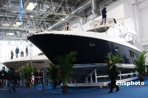 11月20日,由英国国研会展集团主办的“2008北京国际游艇及码头展览会”在北京开幕,十余艘国内外的私家游艇、摩托艇在新国展的展厅集结。据悉,此次展会是迄今为止中国北方最大的国际性专业游艇展,携全球知名的游艇品牌和游艇相关的服务厂家与北京市民亲密接触。