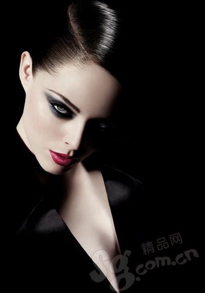 一面是阳刚,一面是阴柔——穿着女士西服,拥有精致的肤色。深邃的具有金属及烟熏的眼部妆容,鲜粉红色的嘴唇,充满了魅惑的吸引。