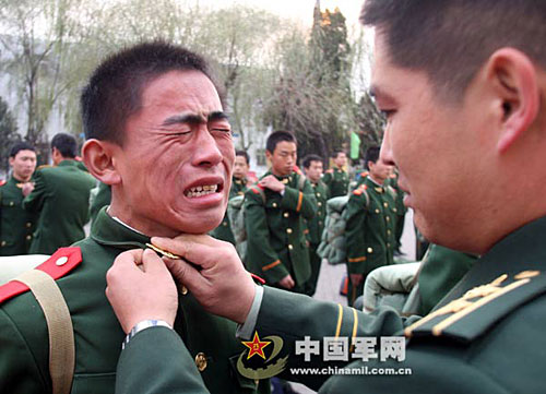 组图:退伍老兵泪别军营