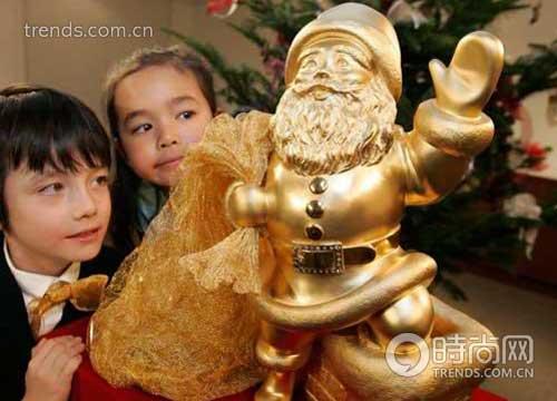在日本东京一著名珠宝制造商的展厅内,一尊纯金打造的圣诞老人塑像摆放在圣诞树前。据悉,这位“珠光宝气”的圣诞老公公重20千克,腰带上镶嵌有1.7克拉的钻石,总价2亿日元(约合180万美元),将在该公司的展厅内一直展到圣诞节来临。