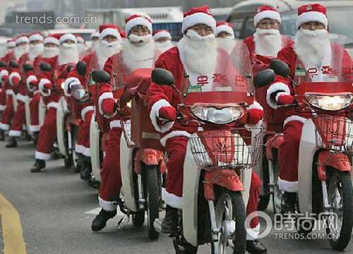 韩国,首尔。韩国邮差驾驶他们的递送自行车赠送礼物。(李佳)