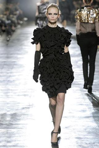 对经典“小黑裙”的挑战,一直是设计师修行道路上的必修课,Lanvin这条裙子的款式是再经典不过的基本款,却因大量如蝴蝶花瓣般的装饰物而变的丰富起来。