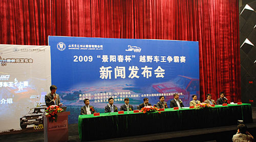 4月3日下午,2009“景阳春杯”越野车王争霸赛赛前发布会在北京蓝色港湾举行。国家旅游局规划财务司陈成忠副司长、山东省旅游局赖征宇副局长、山东省自驾游协会丁再献会长、安丘市市委市政府周寿清副市长、安丘市市委市政府宣传部云增忠部长、安丘市市委市政府宣传部于利民副部长、山东景芝酒业股份有限公司刘全平董事长、山东青云国际旅游度假区股份有限公司马世杰董事长、山东青云国际汽车营地总经理王利先生以及来自多家汽车厂商代表出席了此次新闻发布会。