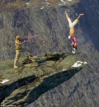 挪威男子热衷平衡极限 千米悬崖裸体走钢丝(图)(3)