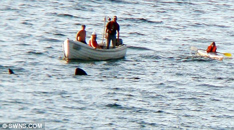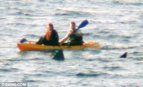 中新网6月4日电 据英国媒体报道,英国一群游客日前在康沃尔一处海上划船时,意外遭到数只巨大鲨鱼包围,所幸他们保持镇定,鲨鱼感到没有威胁后,默默离他们远去。