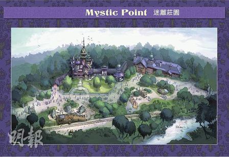 “迷离庄园”坐落热带雨林中心地带,内建一栋“迷离大宅”,主人是个孤僻的旅行家和冒险家,大宅内藏有各类奇珍异品。游客以4人为单位,乘坐无轨驱车系统操作的小车,跟着“百厌”猴子,在大宅自由地“飘移”,猴子更会打开魔法八音盒,释出内里神秘力量,掀起连连怪事,奇幻影像四飞,宾客会遇上采用“发声机动”的塑像和特别视听效果。