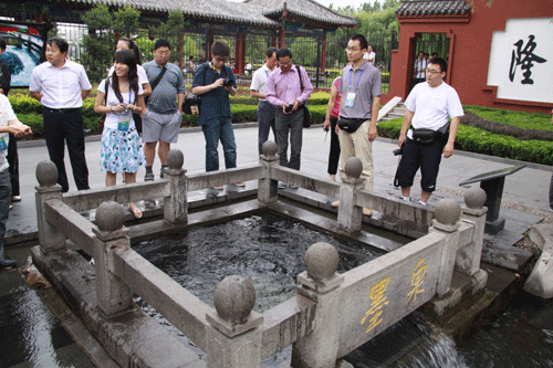 中新网8月21日电 21日下午,网络媒体山东行采访团来到济南百脉泉公园,美丽的园林美景令采访团成员留恋往返。