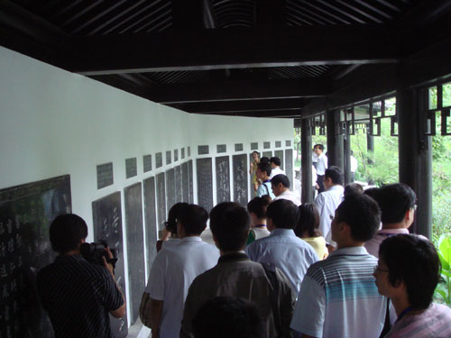 中新网8月24日电 今日上午,中国网络媒体山东行代表团分别走访了位于临沂市兰山区的“书圣”王羲之的故居以及位于滨河景区的中国书法城。一日走访两个书法胜地,让采访团成员们一整天都沉浸在浓郁的书法氛围中。