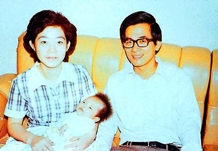 陈水扁吴淑珍带着年幼的陈幸妤和陈致中。