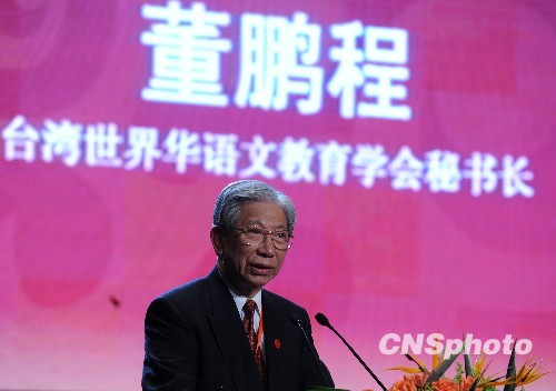 10月20日,首届世界华文教育大会在四川成都召开,来自台湾世界华语文教育学会的董鹏程在大会发言时呼吁两岸合作召开全球华文教育研讨会开创华文教育新局面。 中新社发 廖攀 摄