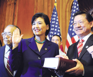 在洛杉矶地区政坛活跃了24年的赵美心(Judy Chu)2009年7月14日晚,在加州联邦第32选区的特别选举中胜出,当选美国首位华裔女国会议员,缔造了历史。在国会参众两院五百多位议员中,赵美心是继吴振伟之后的第二位华裔国会议员,也是美国建国两百多年来首位华裔女联邦议员。