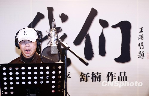图为导演冯小刚在录音棚中录制歌曲《我们》。中新社发 杜洋 摄