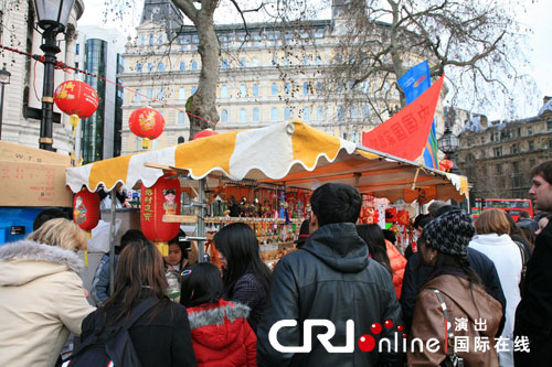 广场周围售卖中国纪念品的小摊吸引了大批顾客。(张哲/摄影)