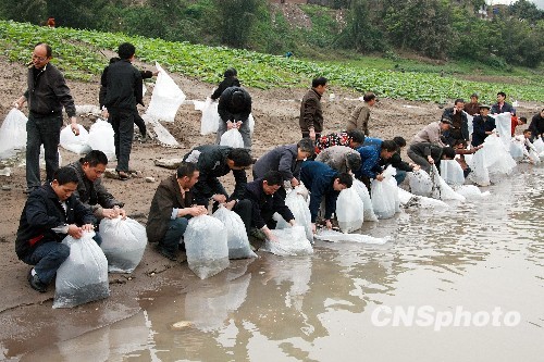 图:向家坝电站建设者与渔民放流珍稀鱼苗(2)