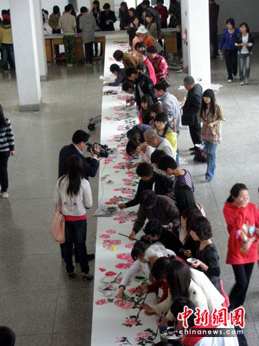 洛阳500书画家绘制千姿牡丹长卷挑战吉尼斯