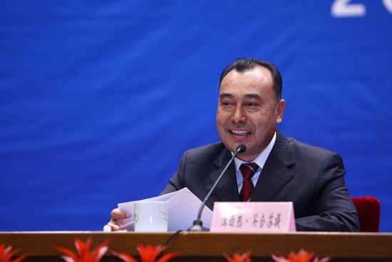 5月8日下午,新疆自治区副主席库热西•买合苏提在“第五届世界华侨华人社团联谊大会”上做了名为《高举各民族大团结旗帜,共同推动新疆繁荣发展与文明进步》的专题演讲。