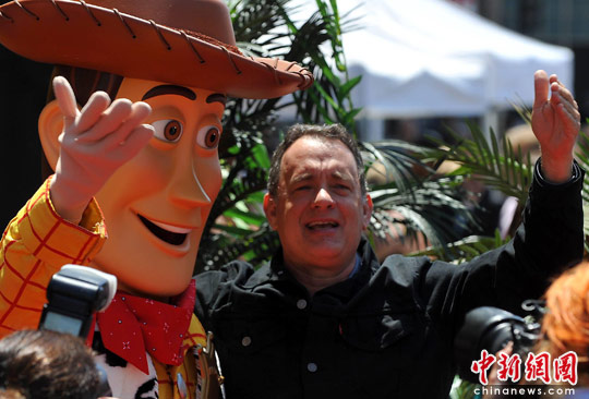 主角伍迪牛仔献声的好莱坞巨星汤姆·汉克斯(Tom Hanks)出席了首映式。中新社发 张炜 摄